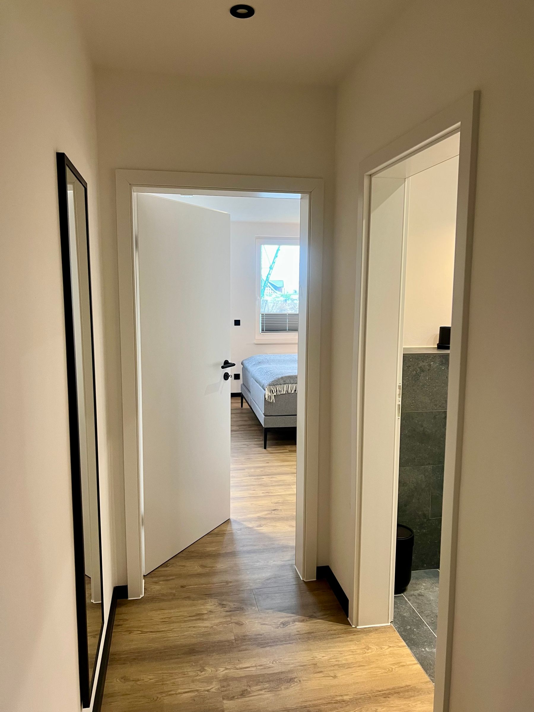 Ihr schlaft in zwei separaten Schlafzimmern mit jeweils einem hochwertigen Boxspring-Bett (180 cm x 200 cm bzw. 160 cm x 200…