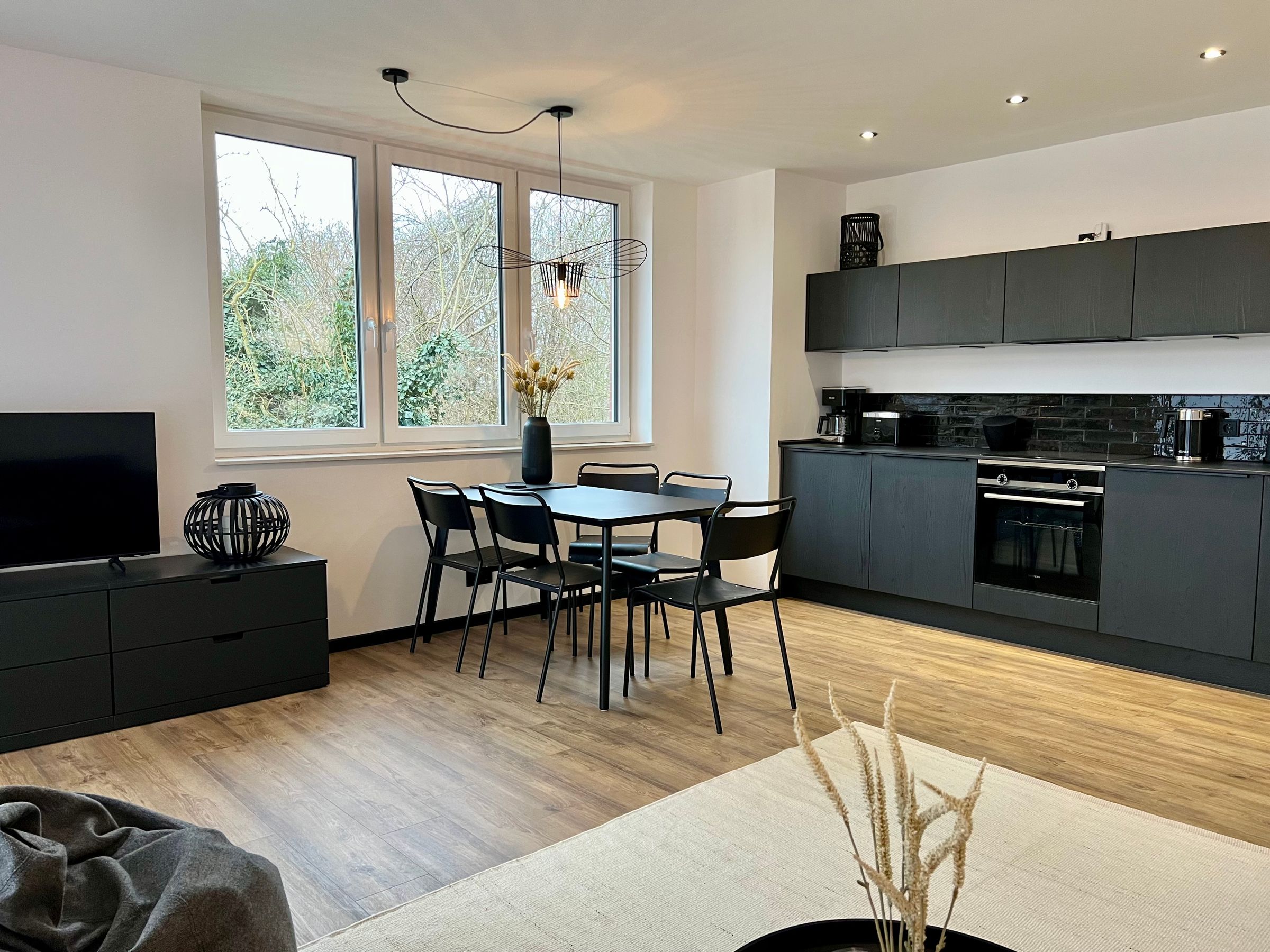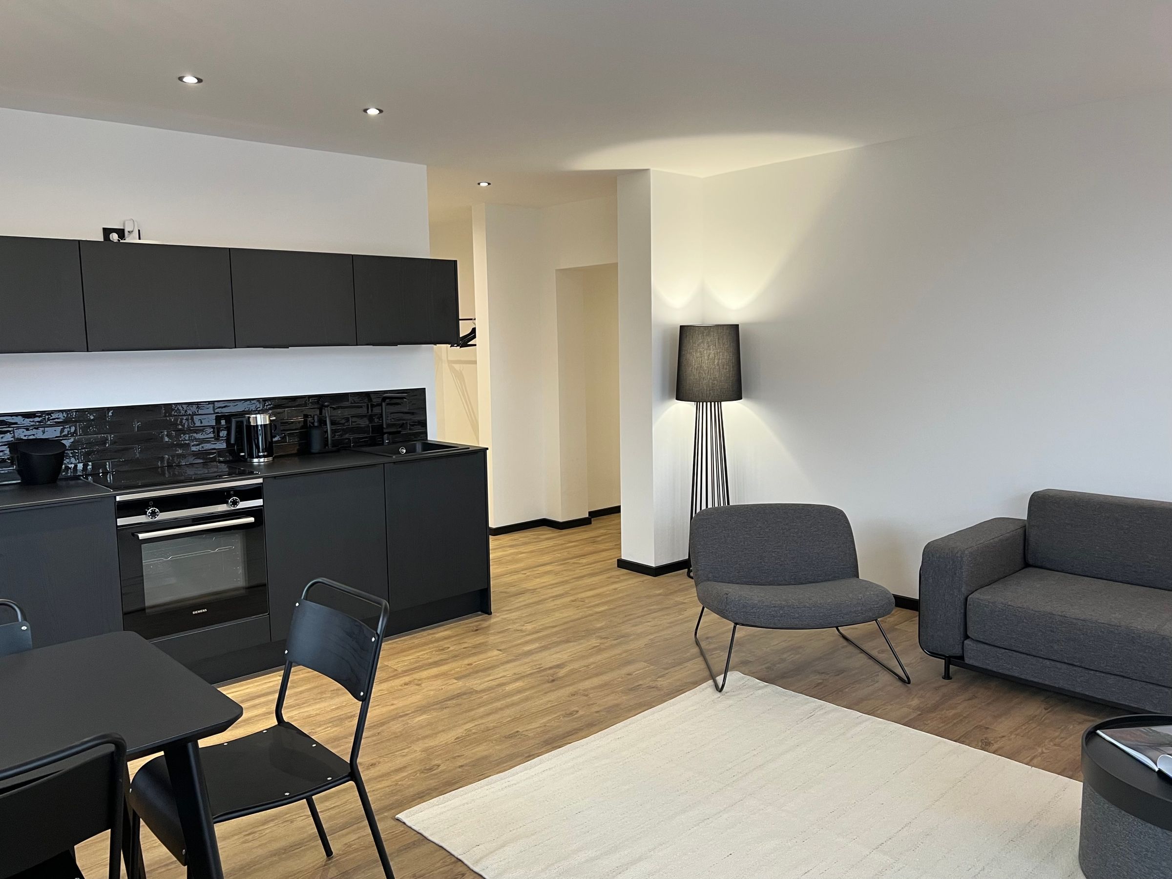 In der hochwertigen Kochnische findest du neben einem Induktionskochfeld mit vier Kochplatten einen Backofen sowie einen Kühlschrank mit Gefrierfach und einen…