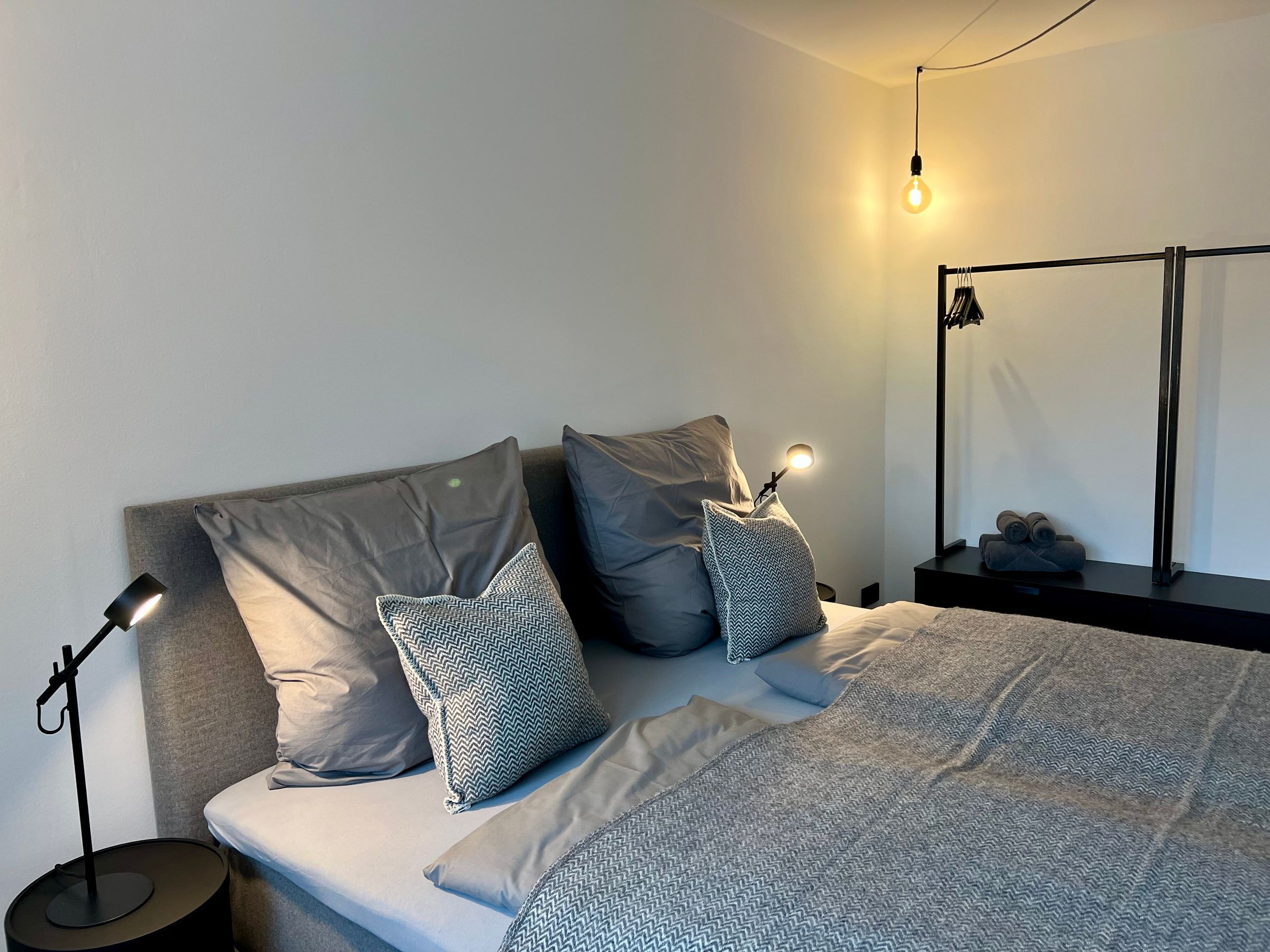 Du schläfst im separaten Schlafzimmer in einem hochwertigen Boxspring-Bett (180 cm x 200 cm), für das wir dir die Bettwäsche zur…